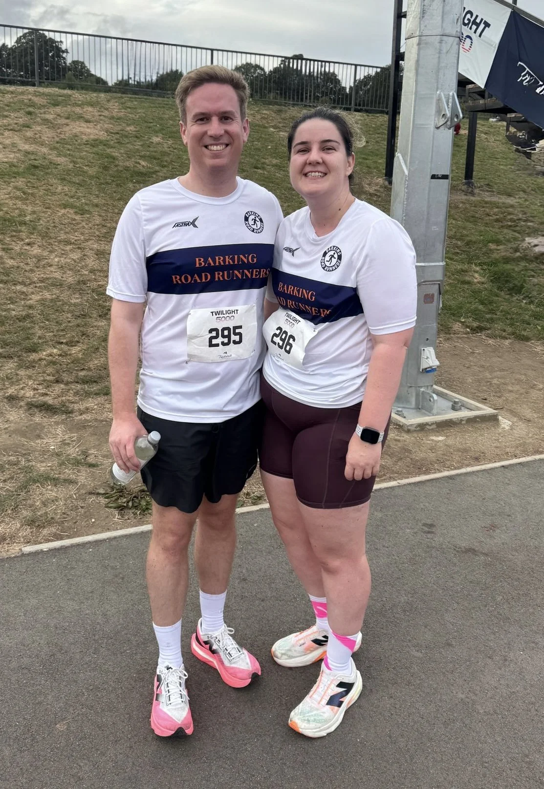 Clodagh and Tom Shorey took part in the Tracksmith Twilight London 5000, finishing in 29:45 (PB) and 23:30 respectively.