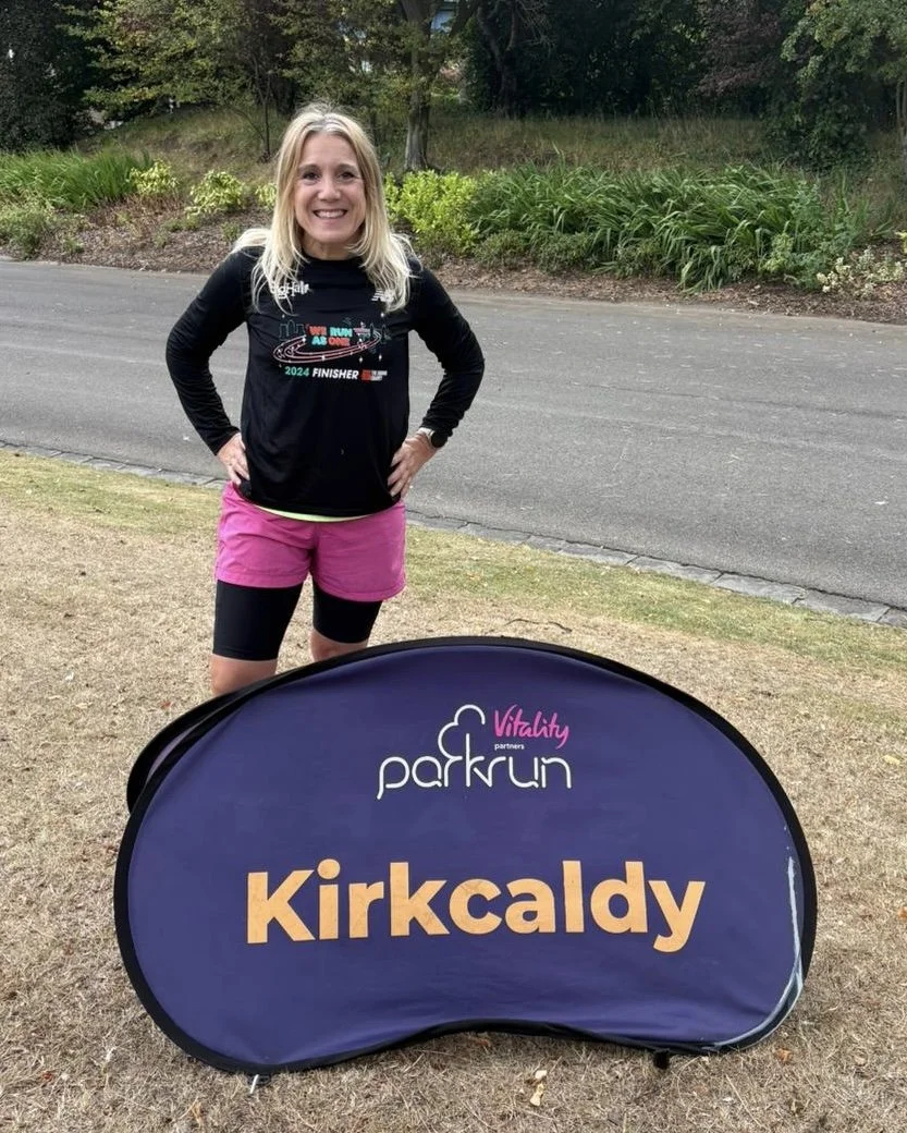Belinda at Kirkcaldy parkrun in bonny Scotland