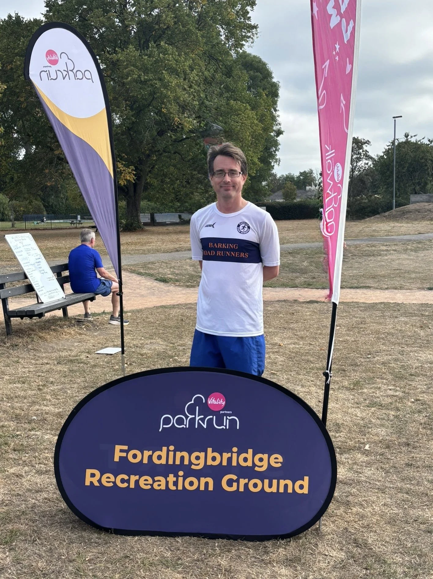 Gary at Chemsford Central parkrun with former members Jenny and Barry C