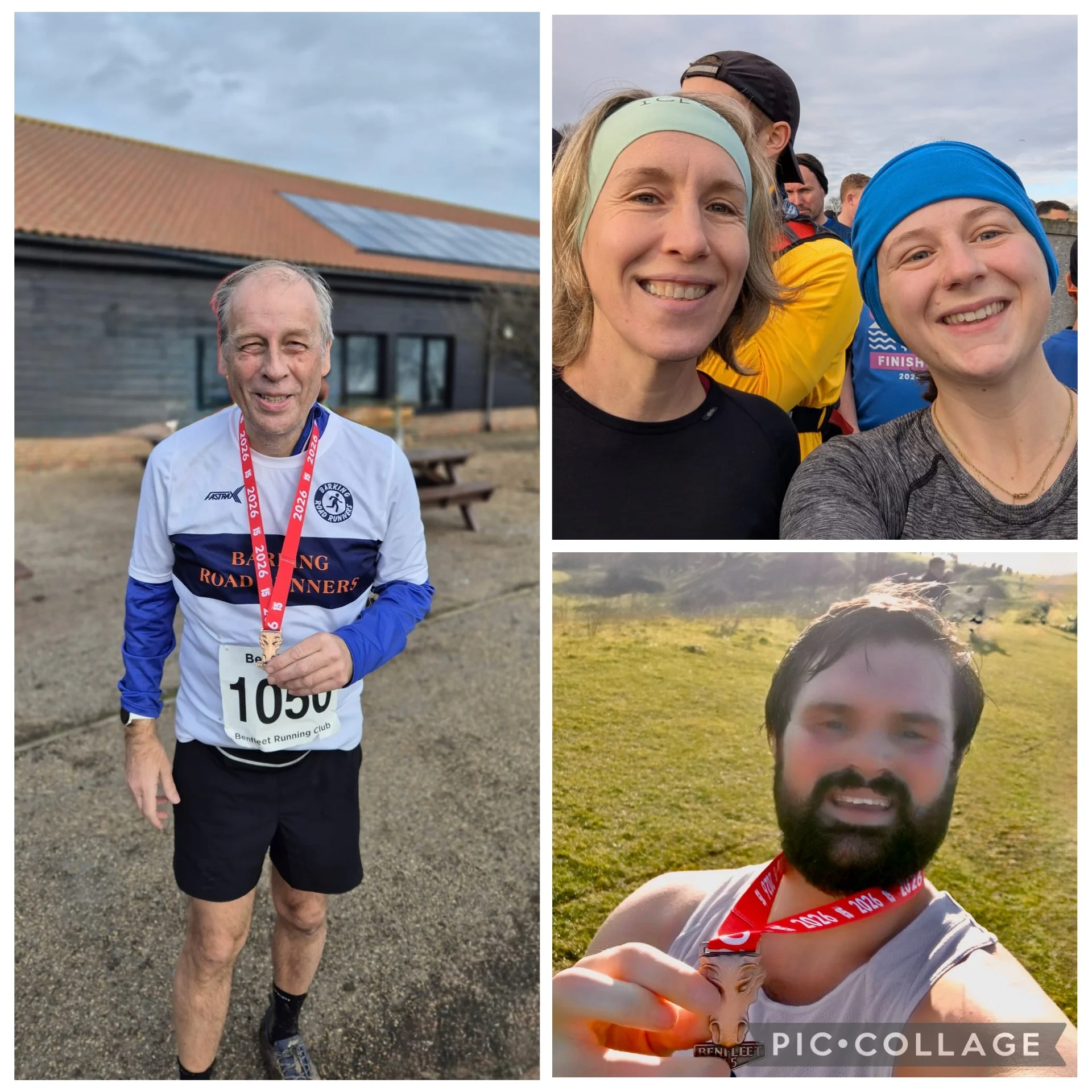 Several BRR members competed in the gruelling Benfleet 15-mile race. Although the weather was milder than usual there were plenty of mud and hills making the conditions tricky as Cristina Cooper can testify as she had a nasty fall that required a visit to the hospital - after she had finished the race, of course. First finisher for BRR was Rory Burr 2:28:04 followed by Cristina Cooper 2:36:48, Emma Paisley 2:53:19 and Barry Rowell 3:24:24