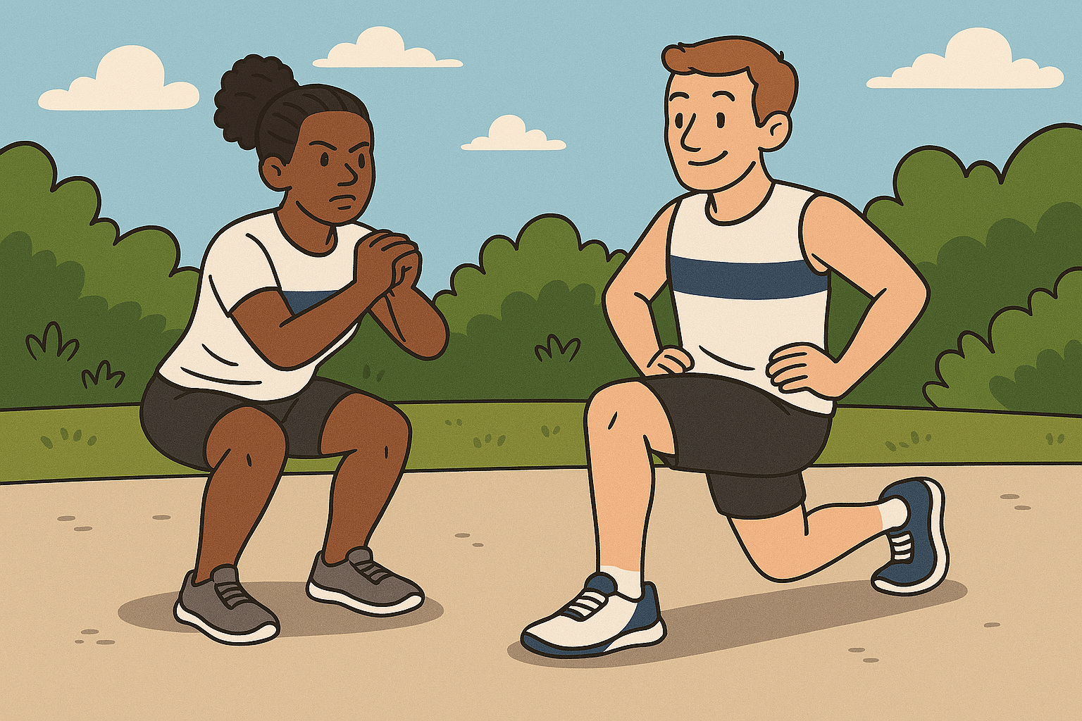 Strength training doesn't have to be hard and confusing, squats and lunges are good for power in the legs and planks and sit ups can help you build a strong core which will help you keep upright and feel stronger and better.