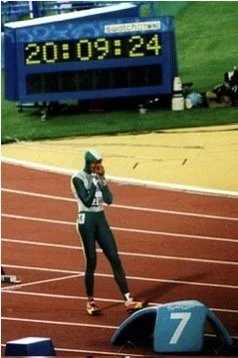 Cathy Freeman in her famous swift suit. Photo courtesy of WikiCommons