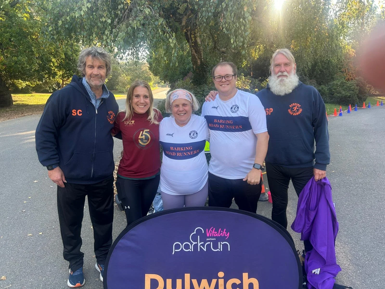 Steve C, Belinda, Denise, Darren, and Dennis at Dulwich parkrun