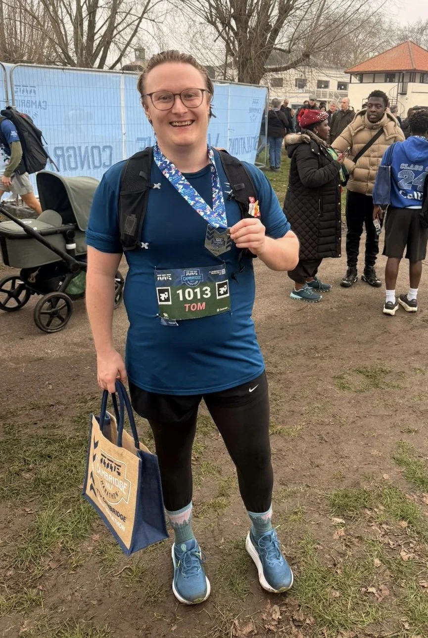 Tom Blair completed his first-ever half - the Cambridge Half Marathon in 2:26:15.