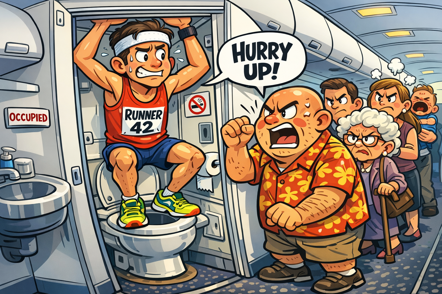 Dom Stroh, founder of the travel-run community RETREATURE decided to complete a 5k run…inside an aeroplane toilet during an 11-hour flight. Armed with a Strava watch and a camera propped in the corner, Stroh began his challenge at 35,000 feet, carefully looping around the tiny space, stepping onto the toilet seat to maximise each stride. Fifty-nine minutes and 32 seconds later, he’d clocked 5.53 kilometres—at a 10:46 per kilometre pace—earning tongue-in-cheek membership to the “MILES high club”.