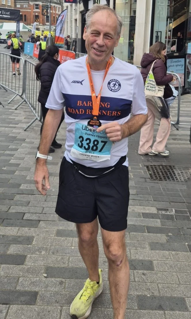 Barry Rowell ran in the Kingston 20-mile race finishing in a time of 3:46:27.