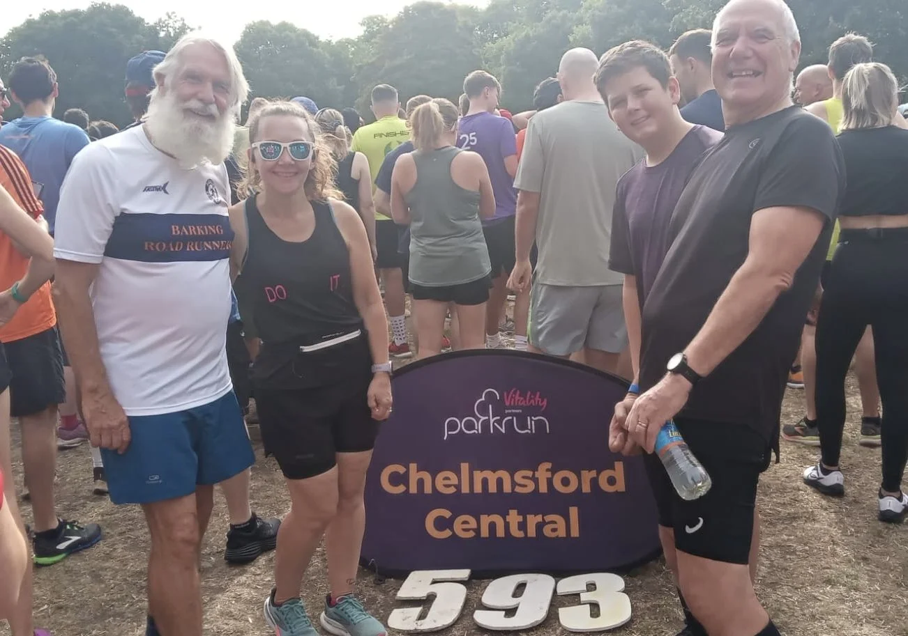 Dennis, Louise, and Gary at a busy Chelmsford parkrun